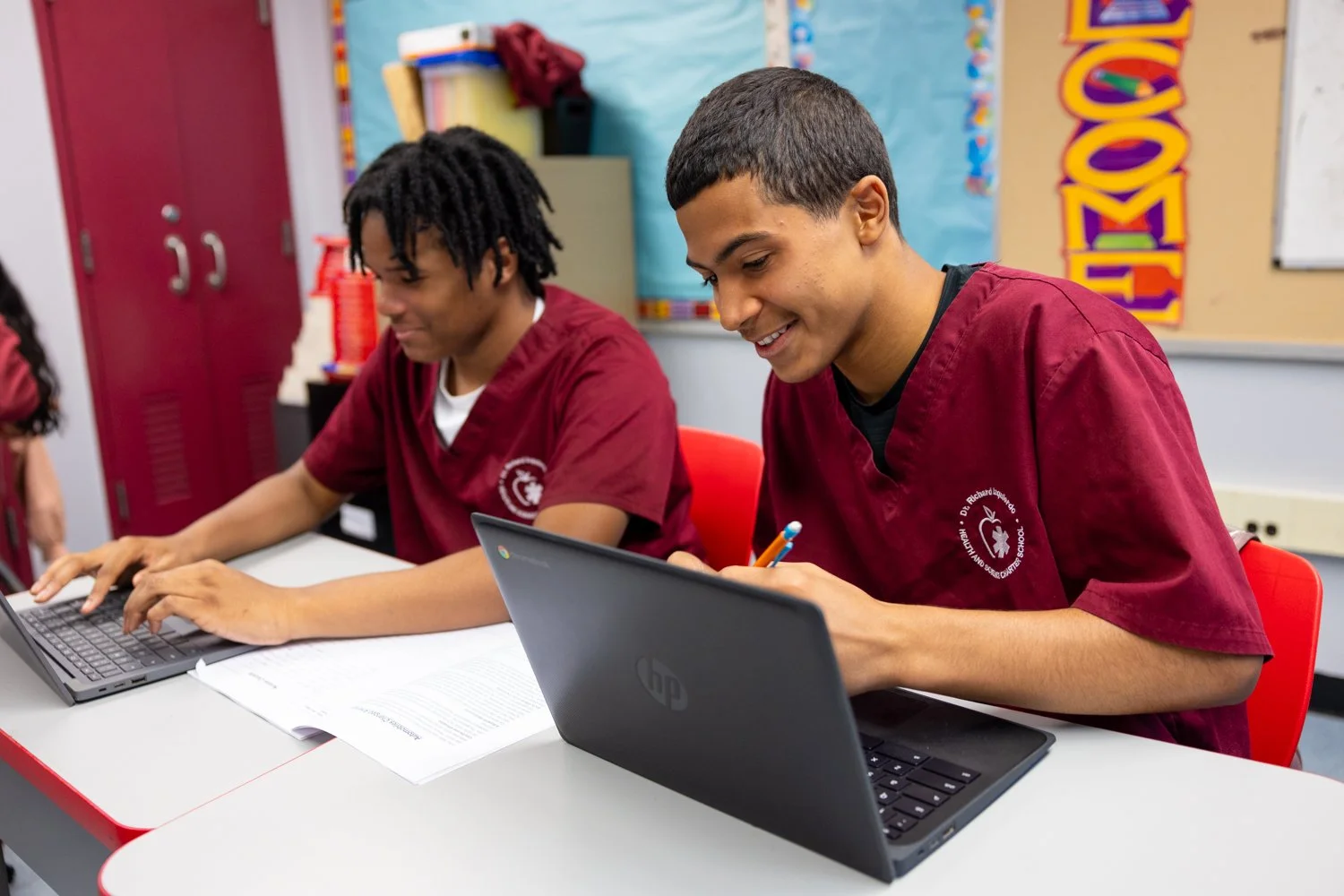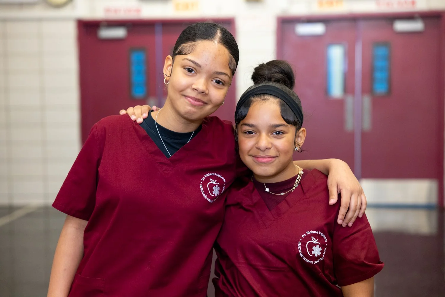 Our scholars wear what health professionals wear - scrubs! In addition to being unique and comfortable, the scrubs uniform is a symbol of our school's commitment to ensuring we promote diversity in the health care field through educating our students in health and science. We provide FREE uniforms to all of our students!